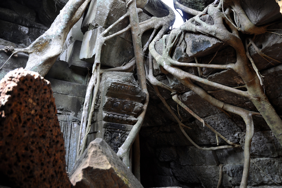 The remote south side of the temple proper (third enclosure) is overgrown by several more impressive trees for photos of wood conquering stone.